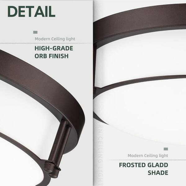 12 in. 2-Light Oil Rubbed Bronze Modern Flush Mount Ceiling Light with Glass Shade