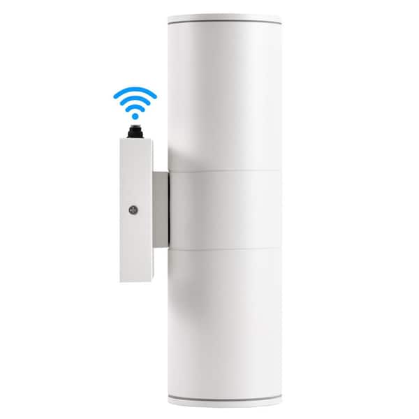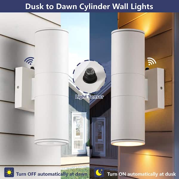 12 in. 2-Light White Cylinder Dusk to Dawn Outdoor Hardwired Wall Lantern Sconce with Integrated LED Lights (1-Pack)