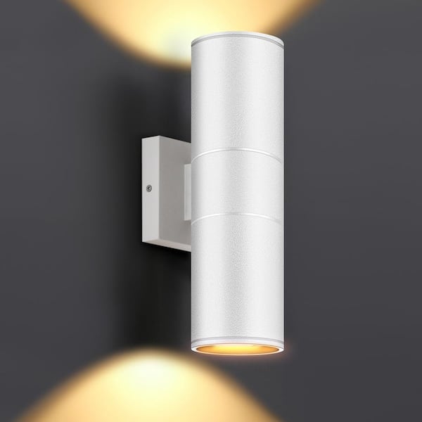 12 in. 2-Light White Cylinder Outdoor Hardwired Wall Lantern Sconce with Integrated LED Lights (1-Pack)