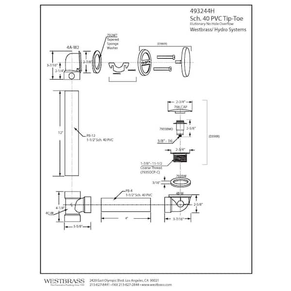 12 in. & 4 in. Bath Waste & Overflow with Tip-Toe Drain Plug and Illusionary Faceplate - Sch. 40 PVC, Satin Nickel