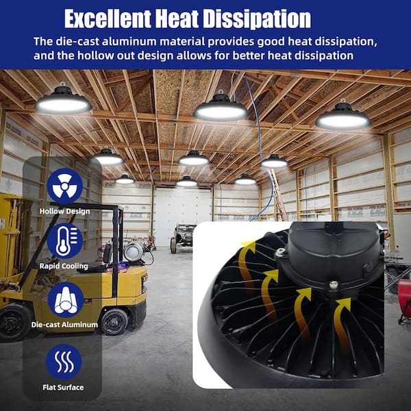 12 in. 600-Watt Equivalent Integrated LED Dimmable Black UFO High Bay Light,5000K High Bay Light, ETL Listed 3Pack