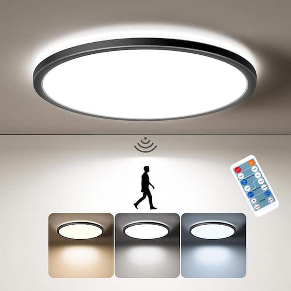 12 in. Black Motion Sensor Integrated LED Ceiling Light Flush Mount with Remote