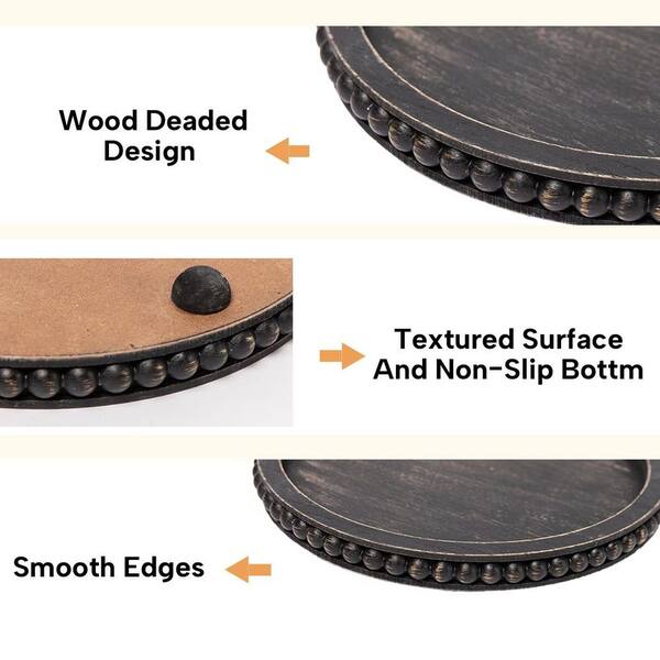 12 in. Black Round Wood Decorative Tray (Set of 1)
