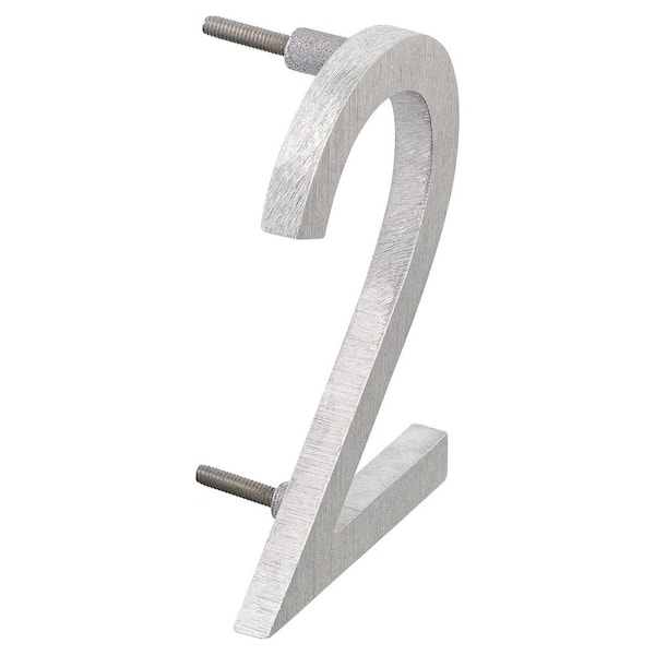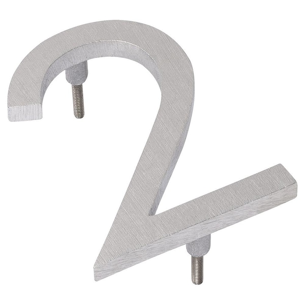 12 in. Brushed Aluminum Floating or Flat Modern House Number 2