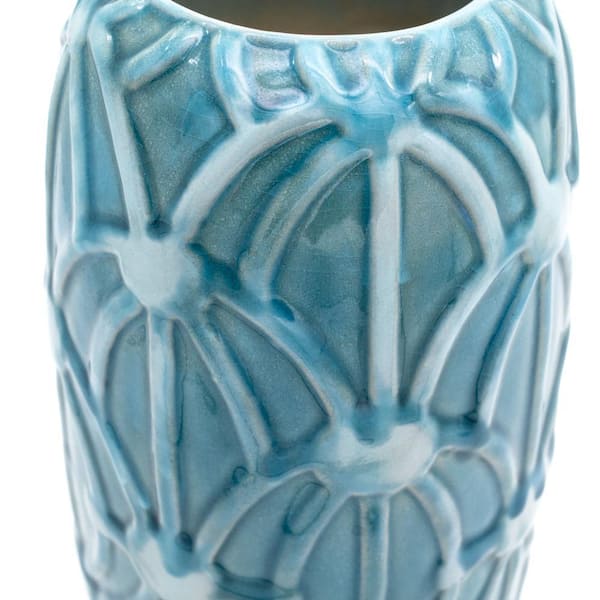 12 in. Grotto Aqua Rope Emboss Column Vase