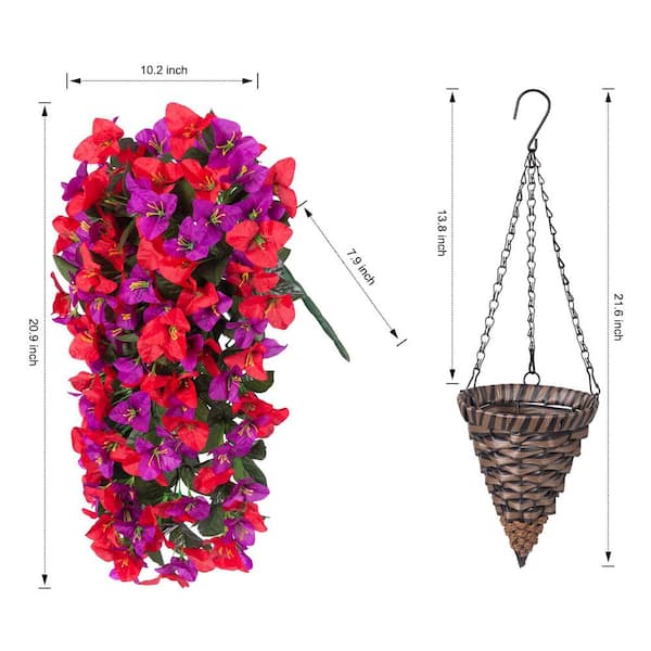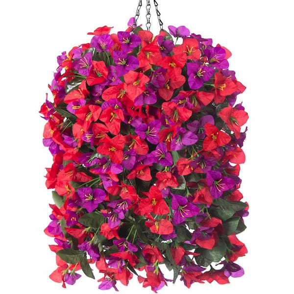 12 in. H Artificial Hanging Flowers in 12 in. Basket, Spring Summer Decoration Flowers, Purple