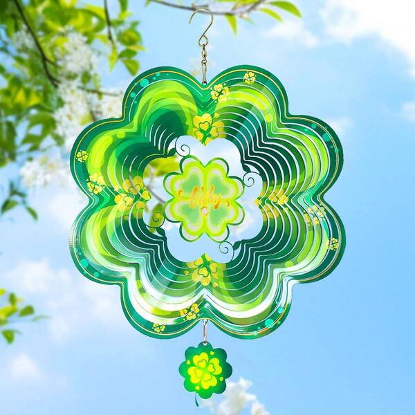 12 in. H Green and Yellow Metal Steel Spring Shamrock Metal Wind Spinners St. Patrick's Day, Lucky, Irish Party Ornament