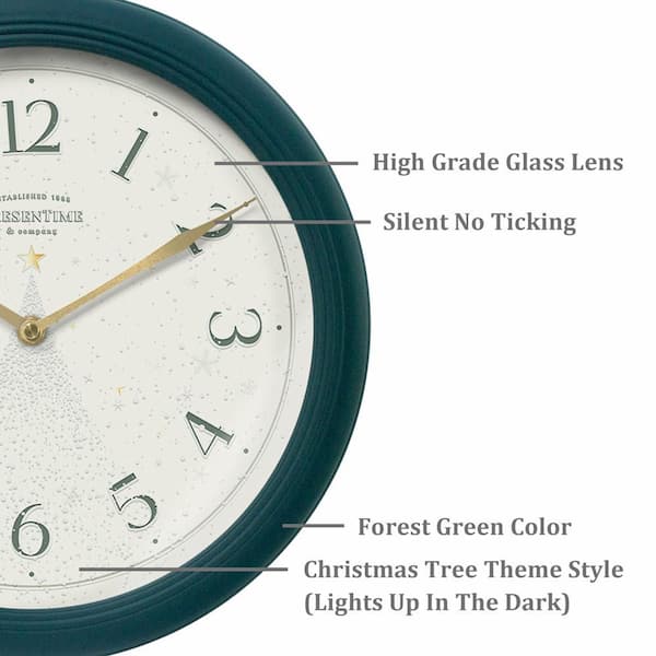 12 in. Modern Forest Green Analog Metal Lighted Wall Clock with Smart Sensor