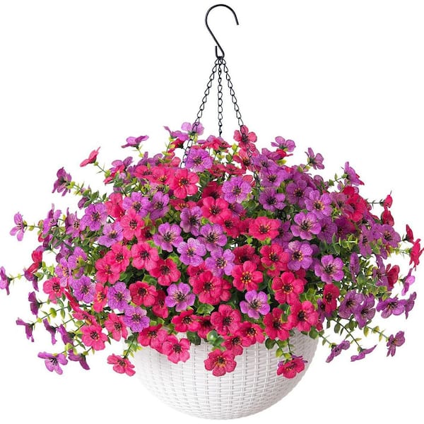 12 in. Multi-Colored Indoor Hanging Artificial Daisy Blossom in White Basket
