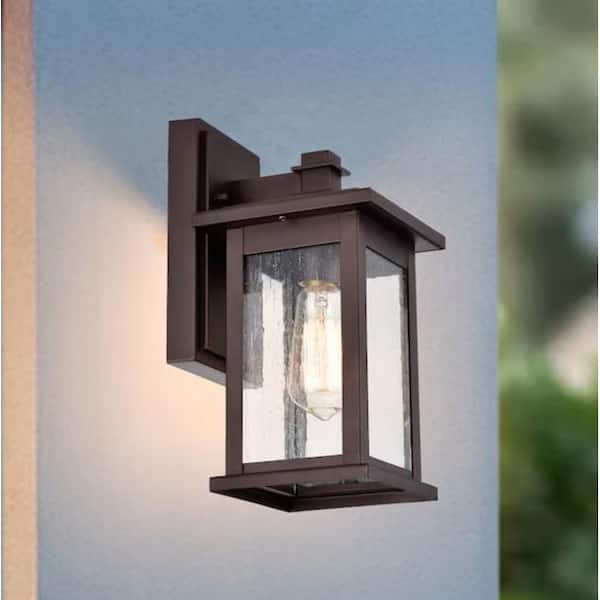 12 in. Oil Rubbed Bronze Outdoor Decorative Wall Lantern Sconce with Clear Seeded Glass Shade Weather Resistant