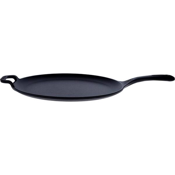 12 in. Pre-Seasoned with Flaxseed Oil Cast Iron Durable Pizza Pan in Black with Stay Cool Long Handle and Loop Handle