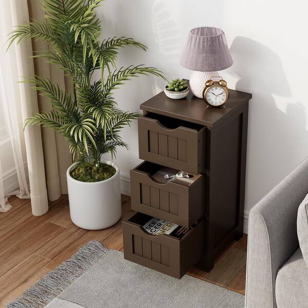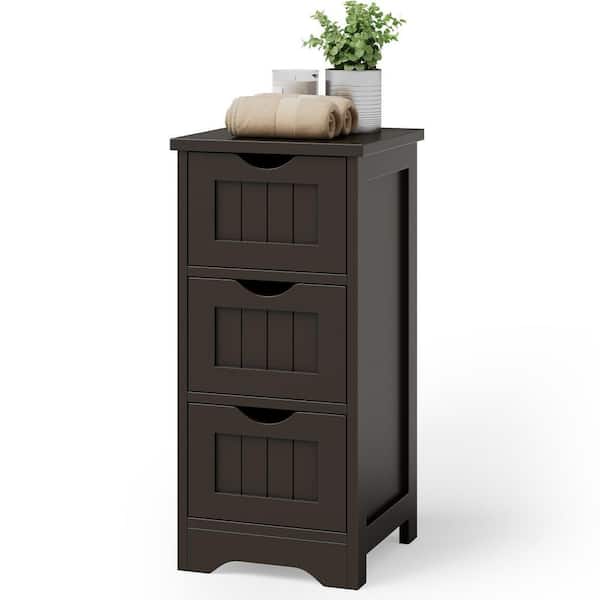 12 in. W x 12 in. D x 25 in. H Brown Bathroom Floor Freestanding Linen Cabinet with 3-Drawers