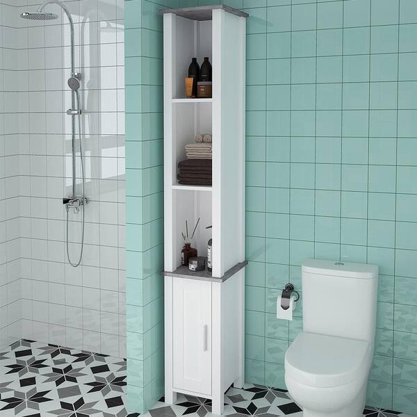 12 in. W x 12 in. D x 68 in. H White Wood Linen Cabinet