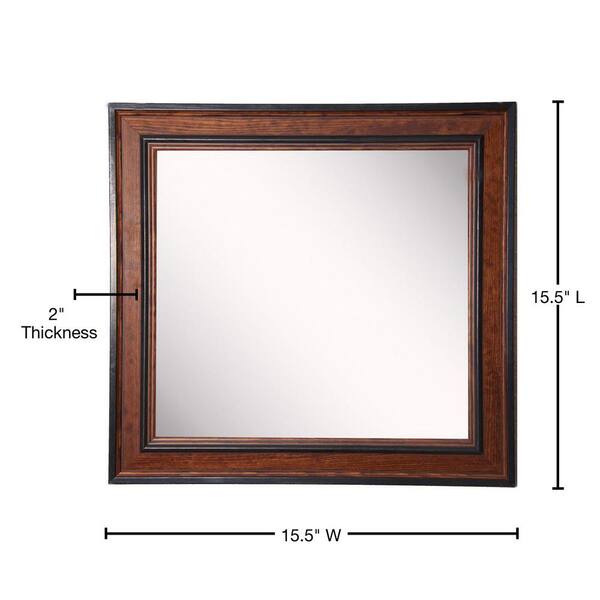 12 in. W x 12 in. H Framed Square Bathroom Vanity Mirror in Brown