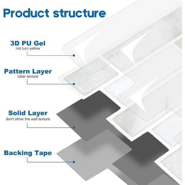 12 in. x 12 in. PVC Peel and Stick Tile, Removable Backsplash Wall Tiles in Slate White Marble (10 sq. ft. /10-Sheets)