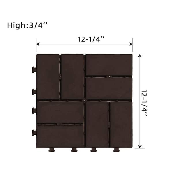 12 in. x 12 in. Waterproof Outdoor Interlocking Slat Plastic Patio and Deck Tile Flooring in Dark Brown (Set of 27)
