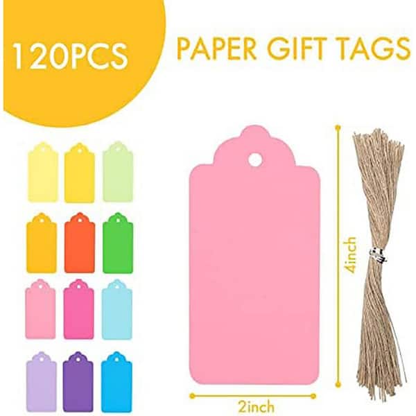 120 PCS Colored Kraft Gift Tags 2x4 Inches with Strings Attached for DIY Crafts Holiday Wedding Party Favors