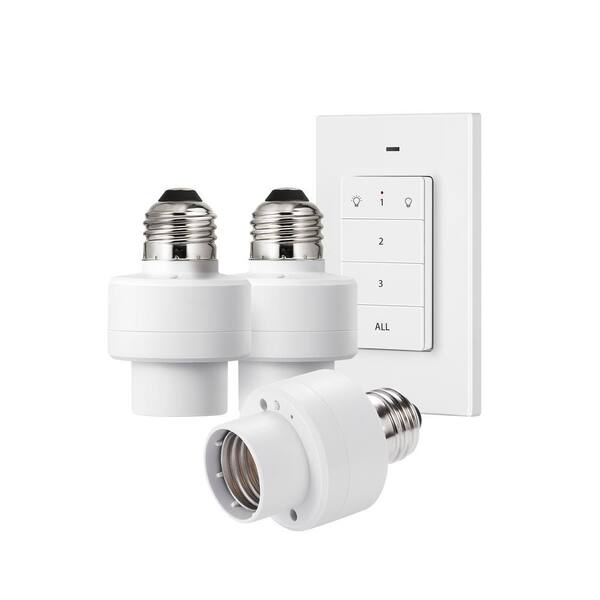 120-Volt Remote Control Light Bulb Switch Socket, White (1 Wall Mounted Controller Plus 3-Socket)