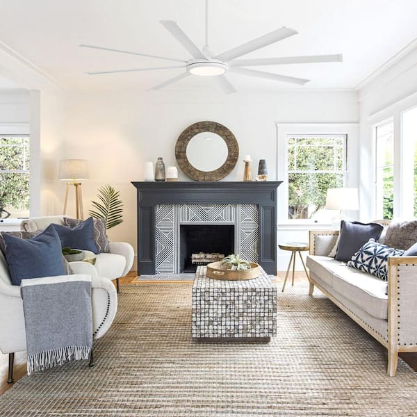 120 in. (10 ft.) Indoor Aluminum Blades Ceiling Fan with Integrated LED, White