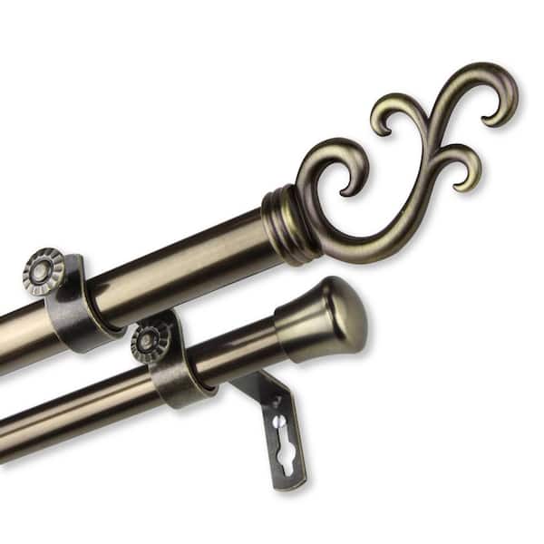 120 in. - 170 in. Adjustable 13/16 in. Carolyn Double Curtain Rod in Antique Brass