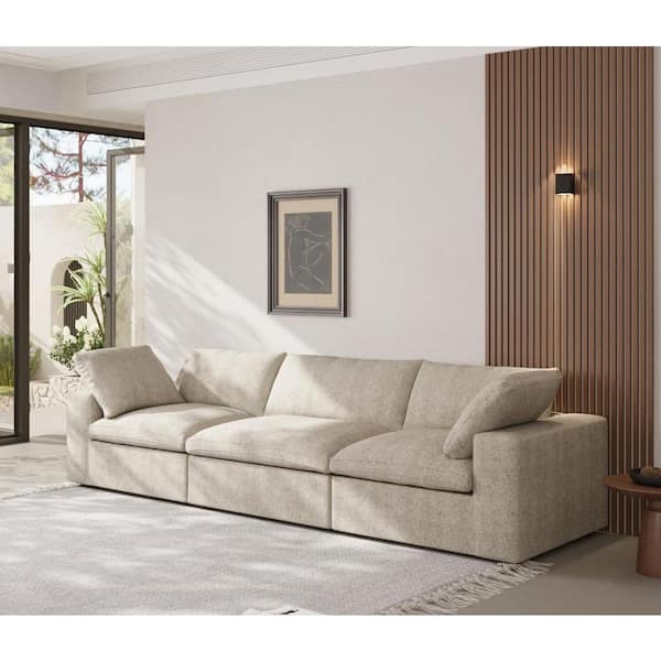 120 in. Square Arm 3-piece Linen Free Combination Sectional Sofa Couch with Removable Cover in. Brown 3-Seater