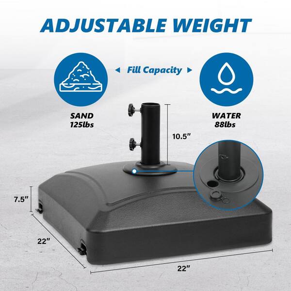125 lb. Square Patio Umbrella Base with Wheels 22 in. Black