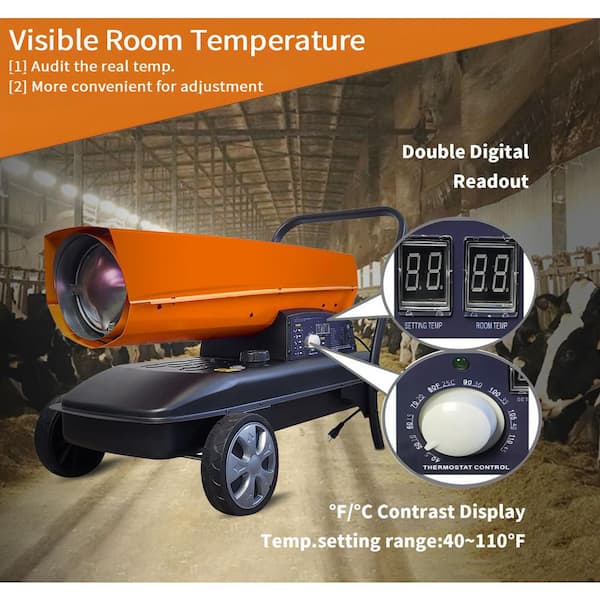 125000 BTU Portable Torpedo Forced Air Kerosene/Diesel Space Heater with Thermostat Control and Overheat Protection