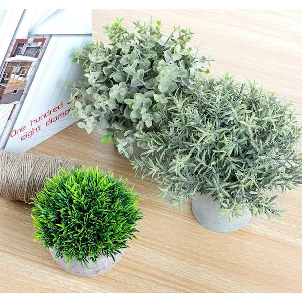 13.1 in. Mini Potted Artificial Plants Fake Small Eucalyptus Greenery Plastic Set of 5