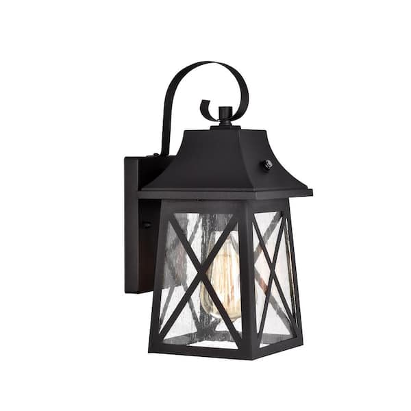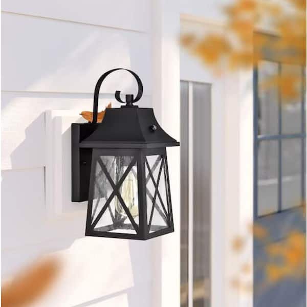 13.25 in. Outdoor Matte Black Motion Sensing Wall Sconce with Clear Seeded Glass Shade