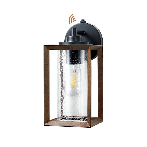 13.4 in. Brown Dusk to Dawn Outdoor Hardwired Wall Lantern Scone with No Bulbs Included