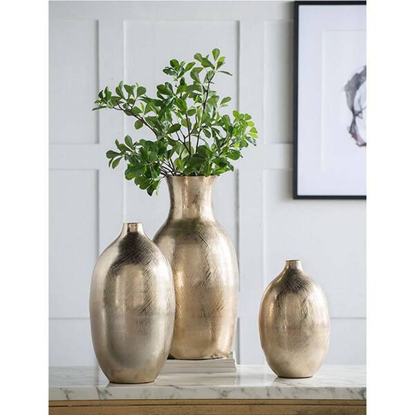 13.5 in. Gold Aluminum Streak Bottle-Shape Design Decorative Vase, Decorative Flower Vase, Modern Neutral Vase