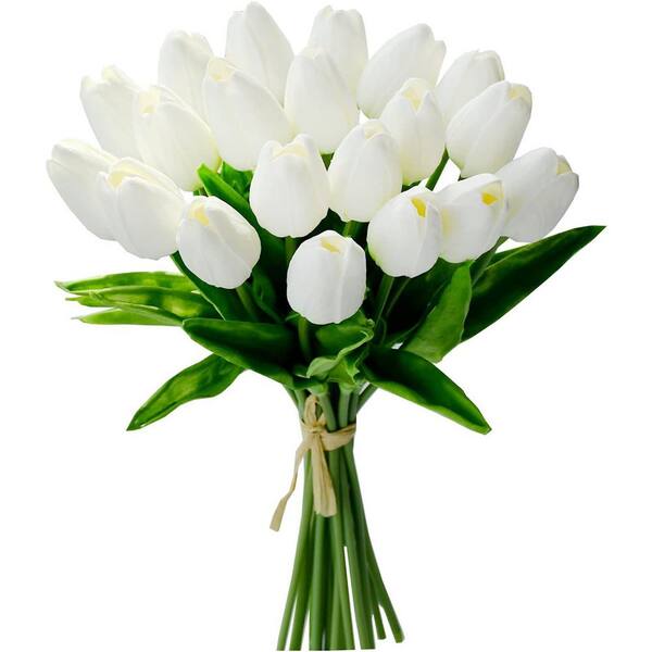 13.5 in. Pure White Indoor Artificial Tulip Flower 20-Pieces