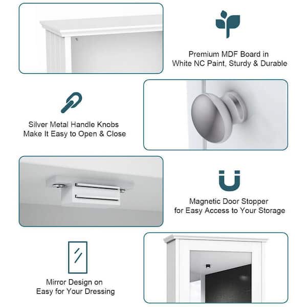 13.5 in. W x 6 in. D x 21 in. H White Bathroom Wall Cabinet with Single Mirror Door and Adjustable Shelf