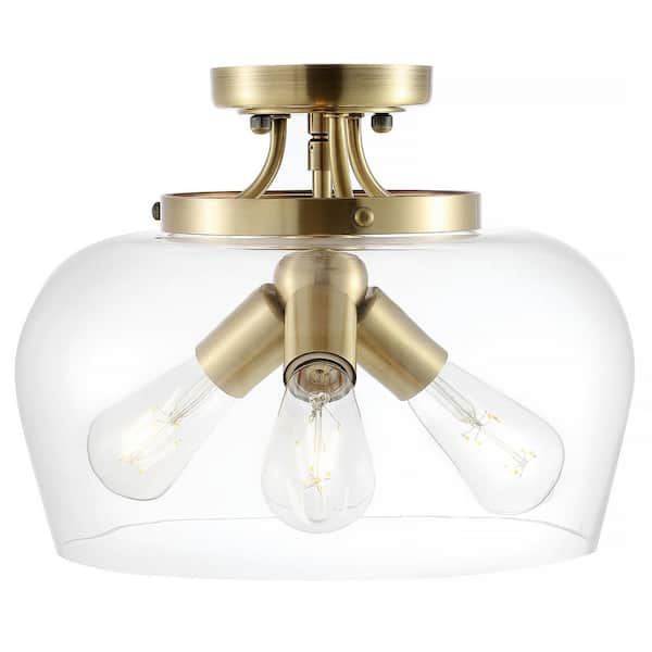13.6 in. 3-Light Gold Semi-Flush Mount