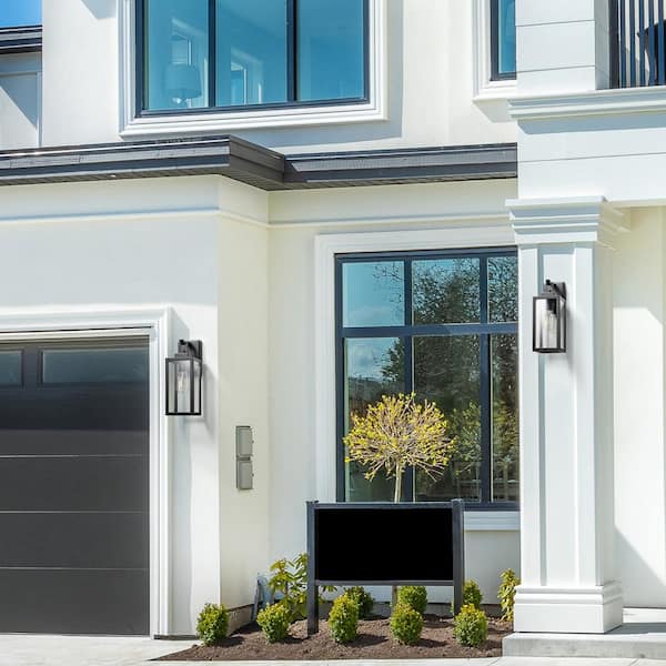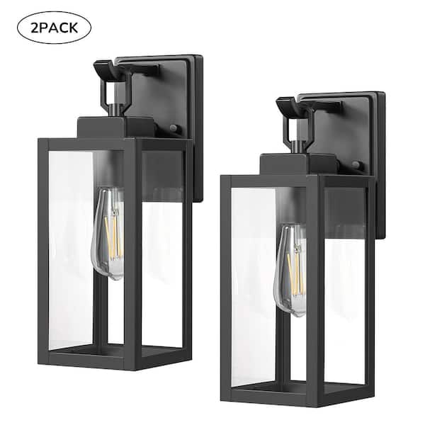 13.7 in. 1-Light Matte Black Hardwired Outdoor Fixture Wall Lantern Light (2-Pack)
