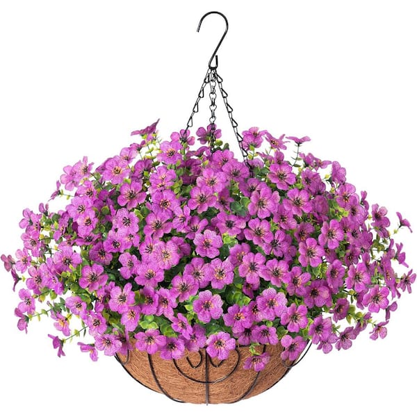 13.8 in. Purple Outdoor Artificial Daisy in Basket Garden Decoration