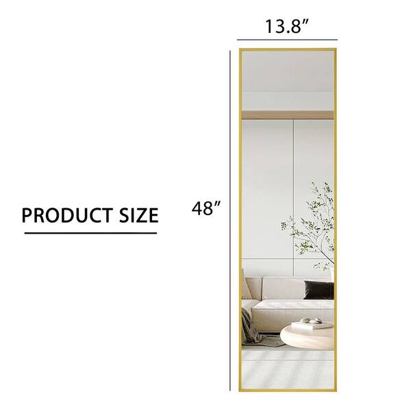 13.8 in. W x 48 in. H Rectangular Aluminium Alloy Metal Framed Wall Mounted Bathroom Vanity Mirror in Gold