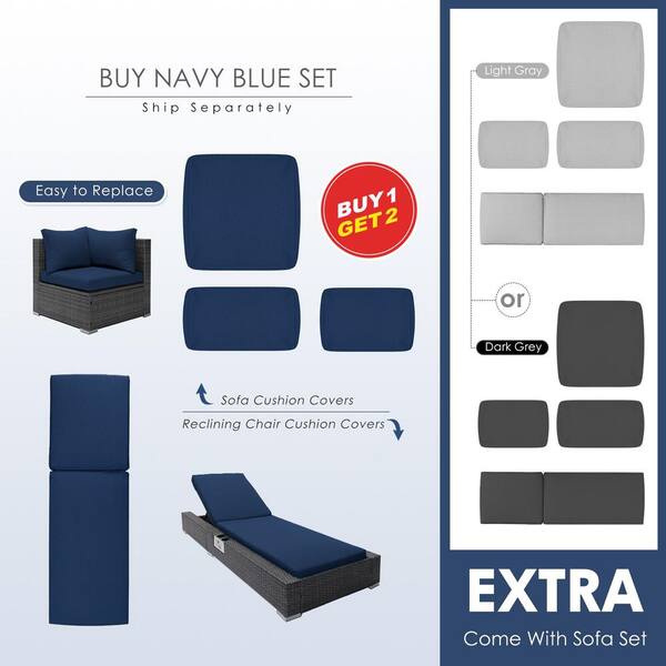 13-Piece Wicker Outdoor Furniture Patio Fire Pit Set Sectional Deep Seating Conversation Set Lounge, Table, Navy Blue