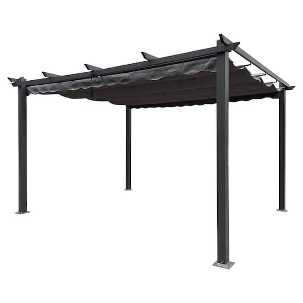 13 ft. x 10 ft. Gray Outdoor Patio Retractable Pergola, With Canopy Sun Shelter Pergola, for Gardens, Terraces, Backyard