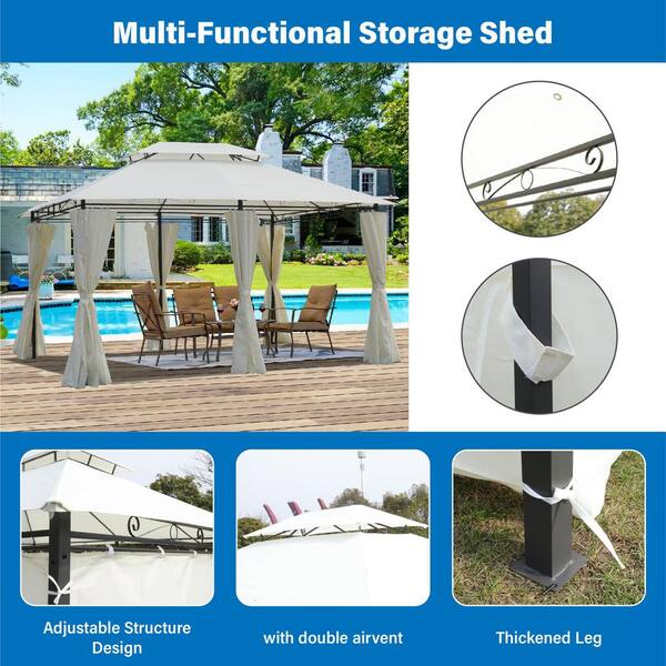 13 ft. x 10 ft. Outdoor Patio Gazebo Canopy Tent with Ventilated Double Roof and Mosquito net in Beige