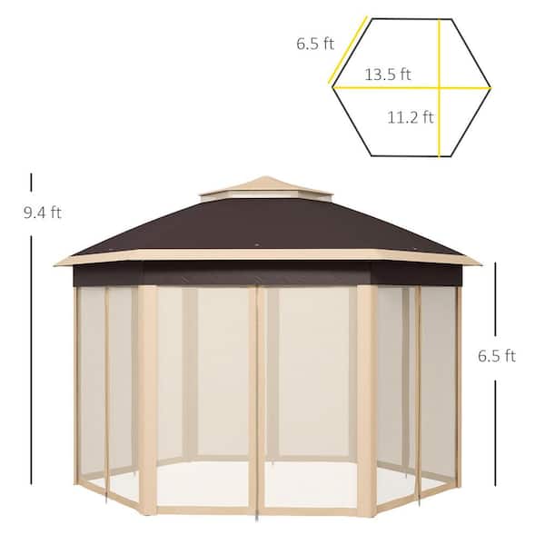 13 ft. x 13 ft. Pop Up Gazebo, Hexagonal Canopy Shelter with 6 Zippered Mesh Netting, Event Tent in Beige