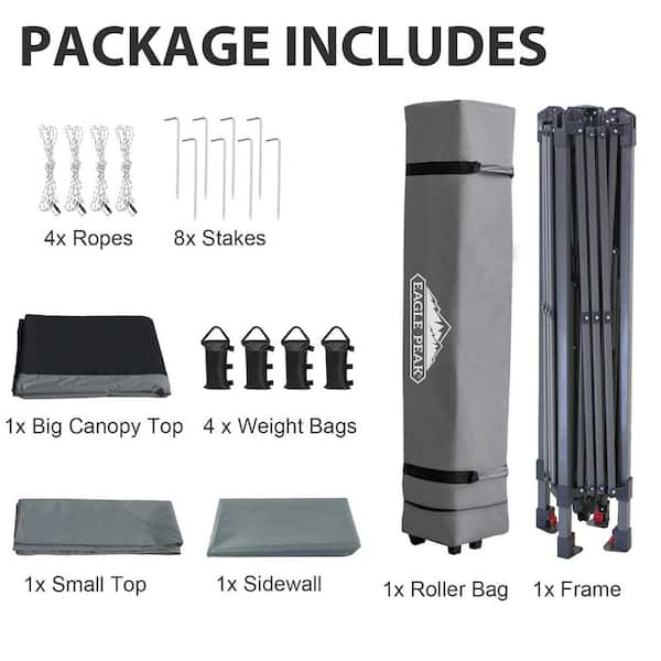 • Includes 8-pieces stakes, 4 guy ropes and sand bags