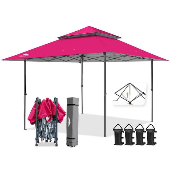 13 ft. x 13 ft. Straight Leg Outdoor Pop Up Canopy Tent with Auto Extending Eaves and 4-Sand Bags