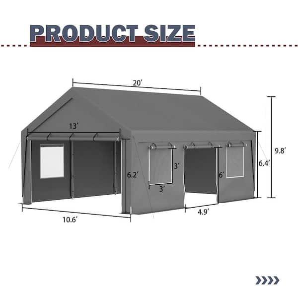 13 ft. x 20 ft. Heavy Duty Steel Carport Storage Canopy Garage Tent with Removable Sidewalls