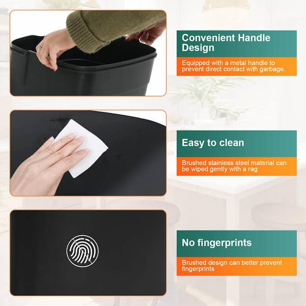 13 gal. Black Step-On Stainless Steel Trash Can