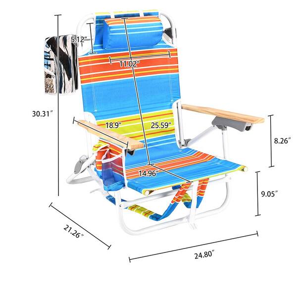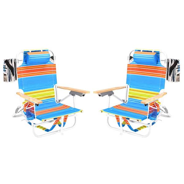 13 in. H 2-Pieces Orange and Blue Stripes Aluminium Folding 5 Position Backpack Beach Chairs with Pouch and Beach Towels