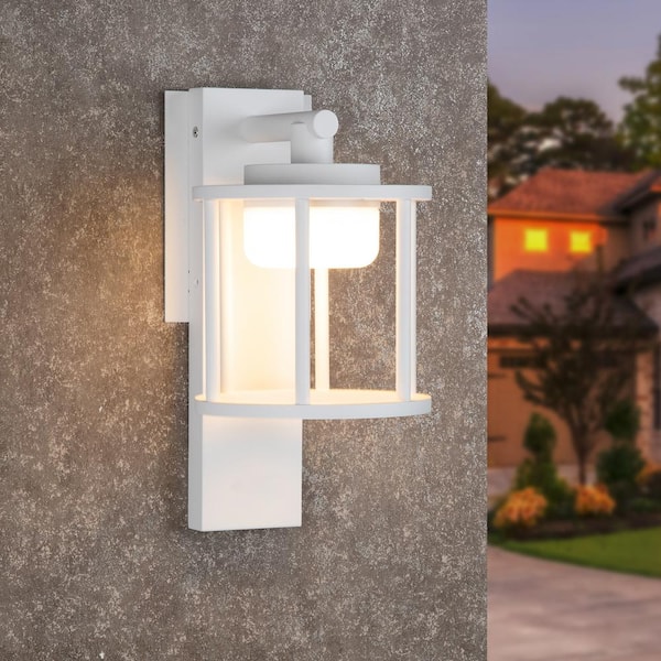 13 in. White Aluminum Durability Wall Light Weather Resistant Hardwired Outdoor Bulkhead Light with Integrated LED
