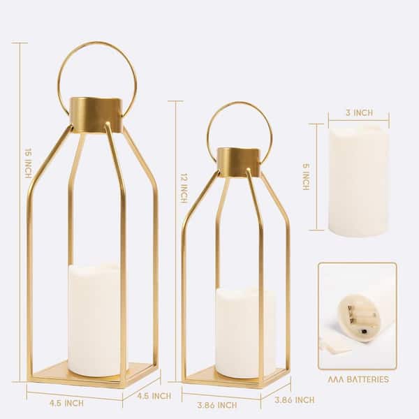 13 in. x 4.5 in. Gold Metal Classic Lantern with LED Candle (2-Pack)