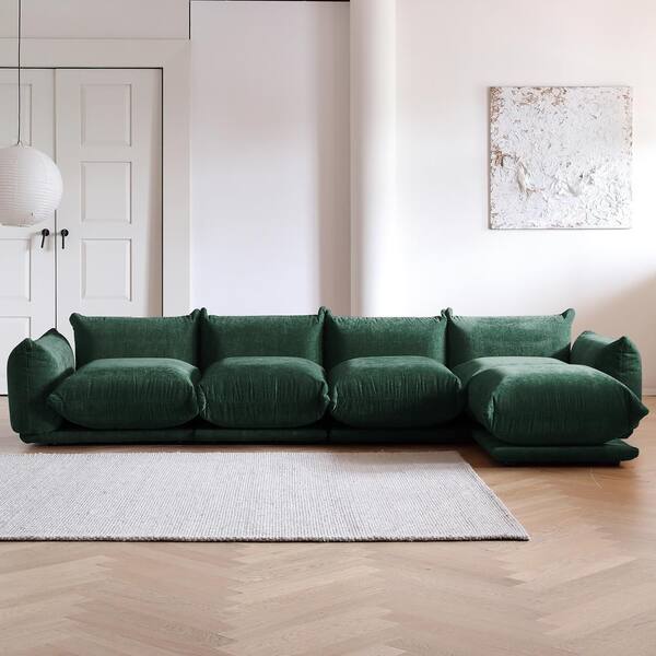 130.7 in. Comfy Floor Level Minimalism 4-Seat Sofa Flared Arm Wide Bread Shape Chenille Thick Couch with Ottoman, Green