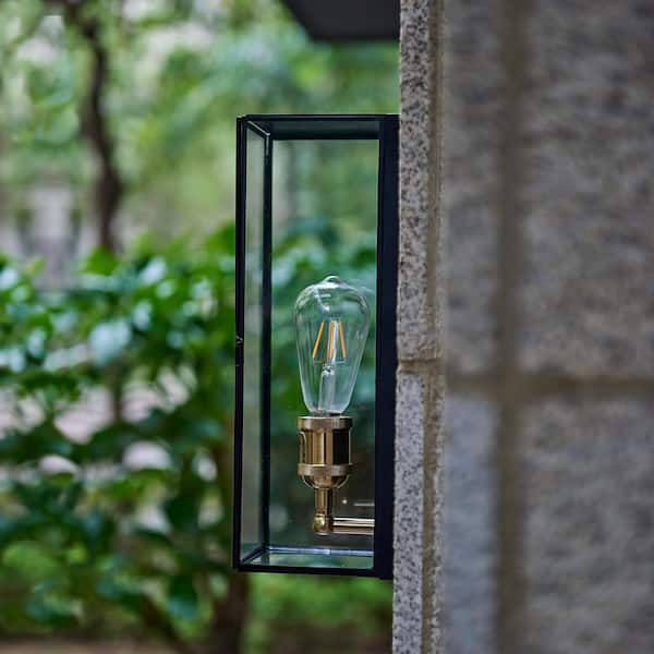14.25 in. Black Outdoor Hardwired Wall Lantern Sconce with No Bulb Included